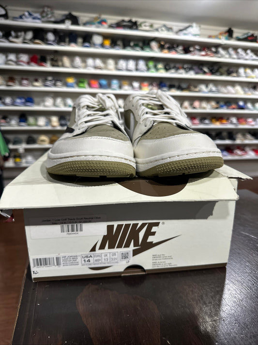 *USED* Jordan 1 Low Golf Travis Scott Neutral Olive (SIZE 14)