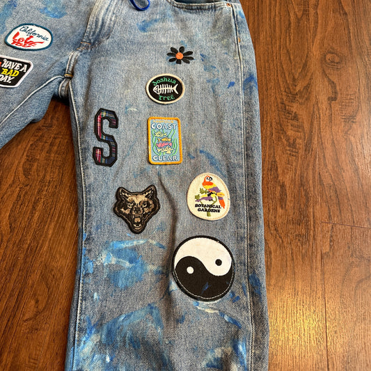 *VINTAGE** Patchwork Paint Splatter Jeans (32Wx32L)