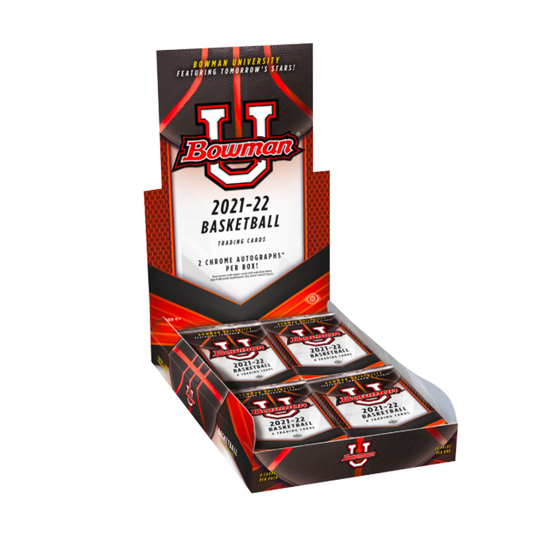 Score big with the 2021-22 Bowman University Basketball Hobby Box! Get 24 packs of 4 cards, with all current college and international basketball players. Every box is a chance for rare autograph cards, all featuring stunning photography. Join the hunt for awesome prizes with the 2021-22 Bowman University Basketball Hobby Box!