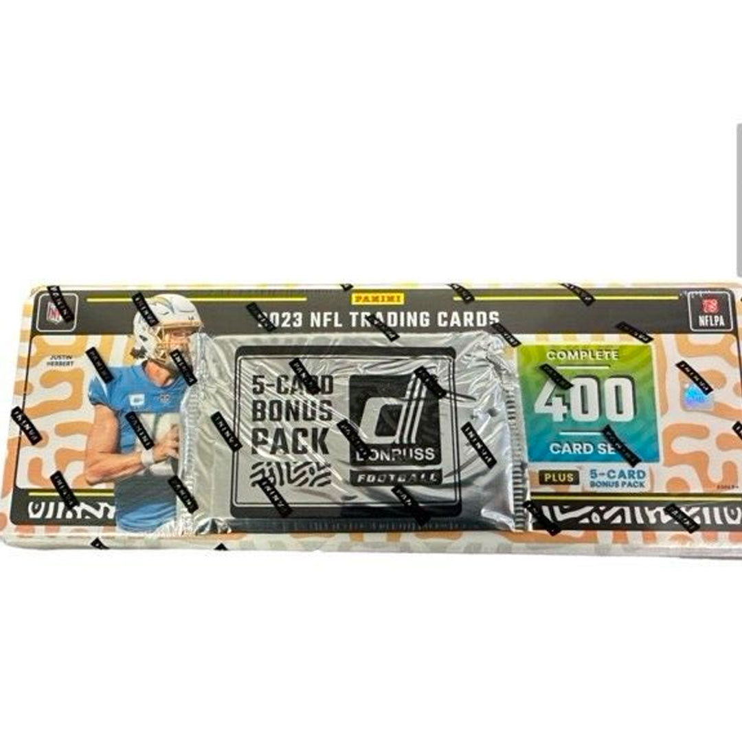 Score big with the 2023 Panini Donruss Football Complete Factory Set! Get ready to dominate the football season with this all-in-one set, featuring all the latest players and teams. With everything you need to jumpstart your collection, this set is a must-have for any football fan.