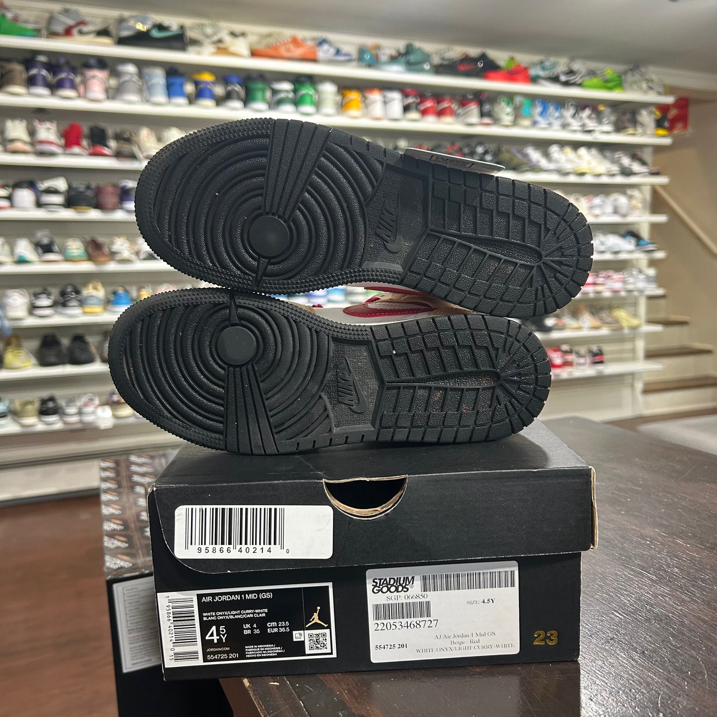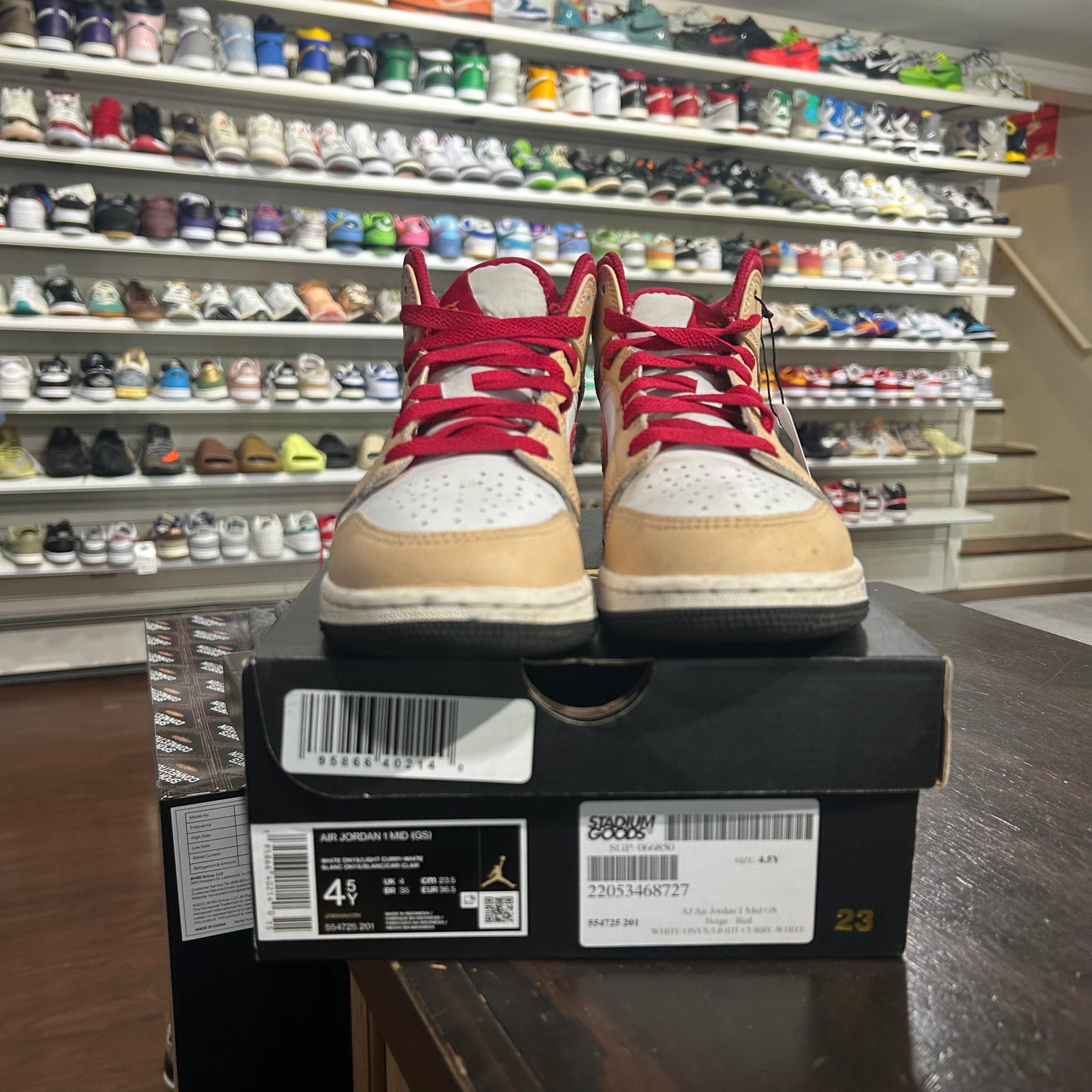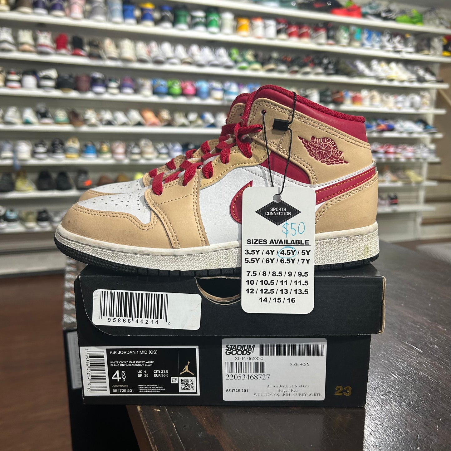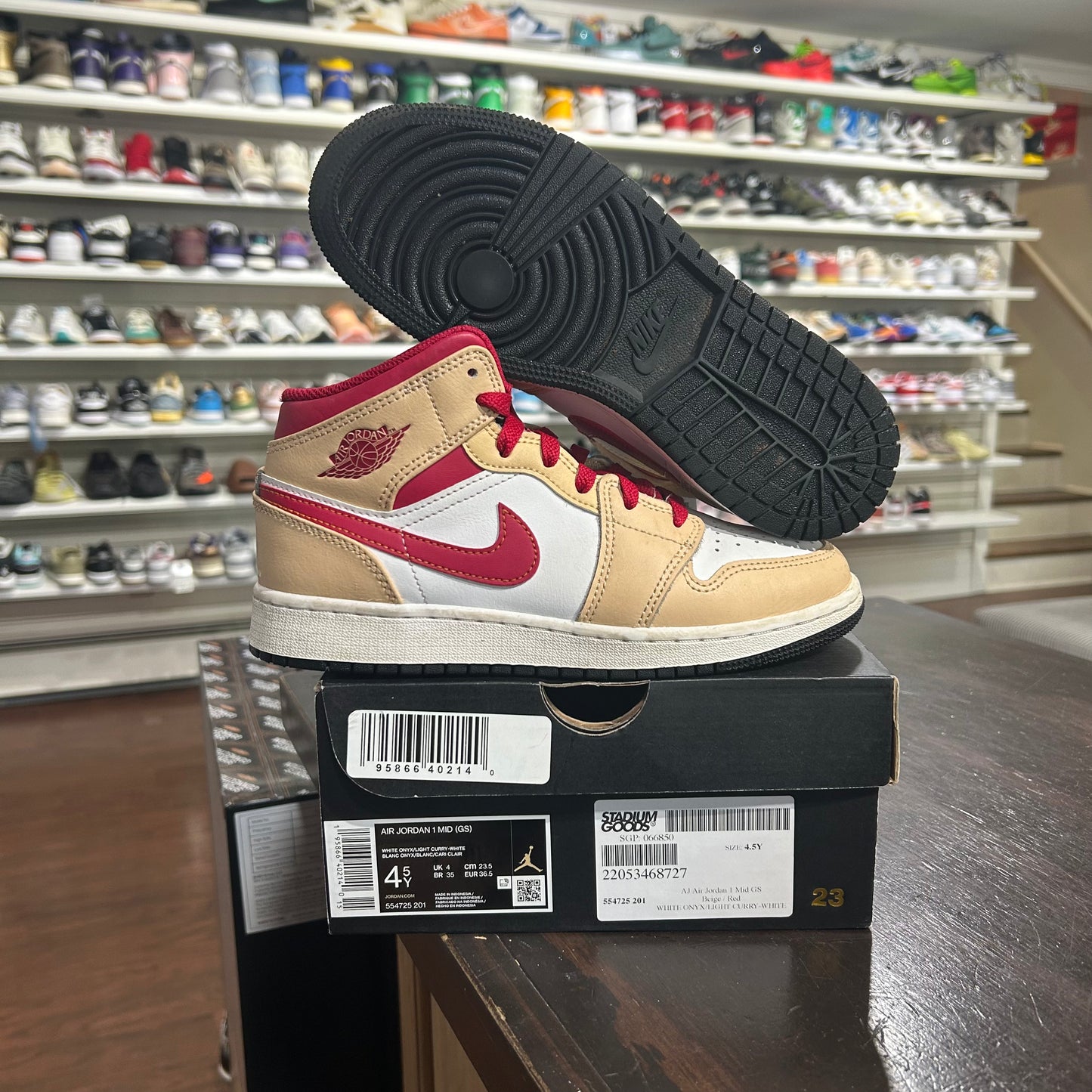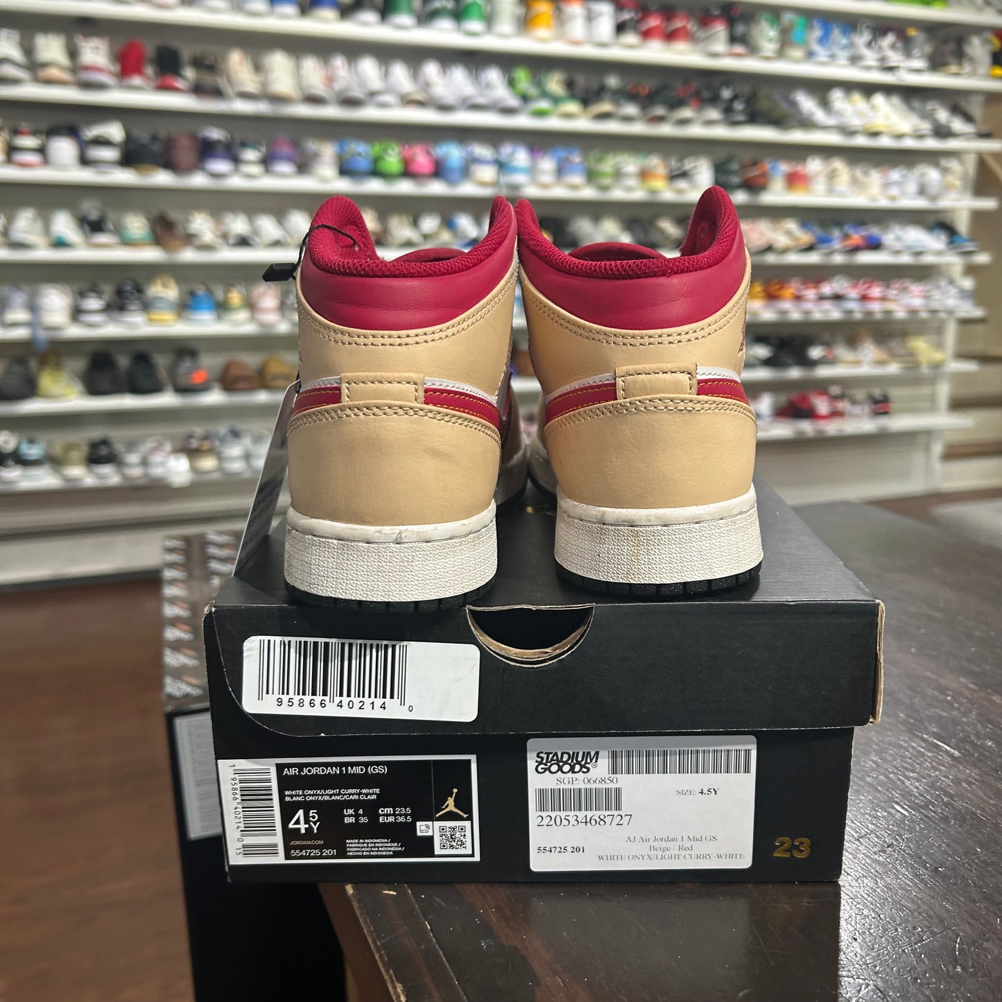 *USED* Jordan 1 Mid Light Curry Cardinal (GS) (Size 4.5Y)