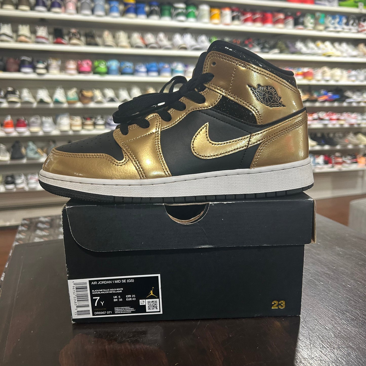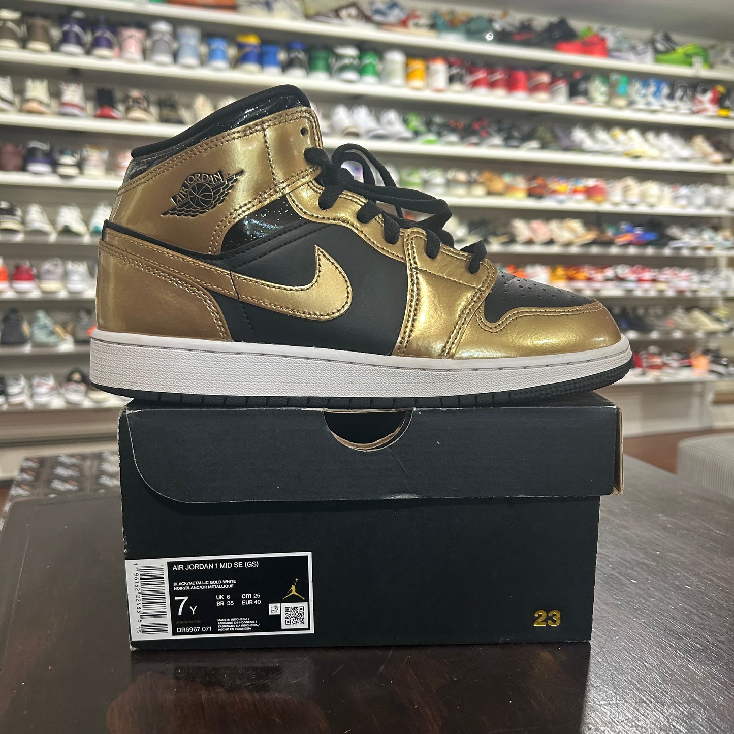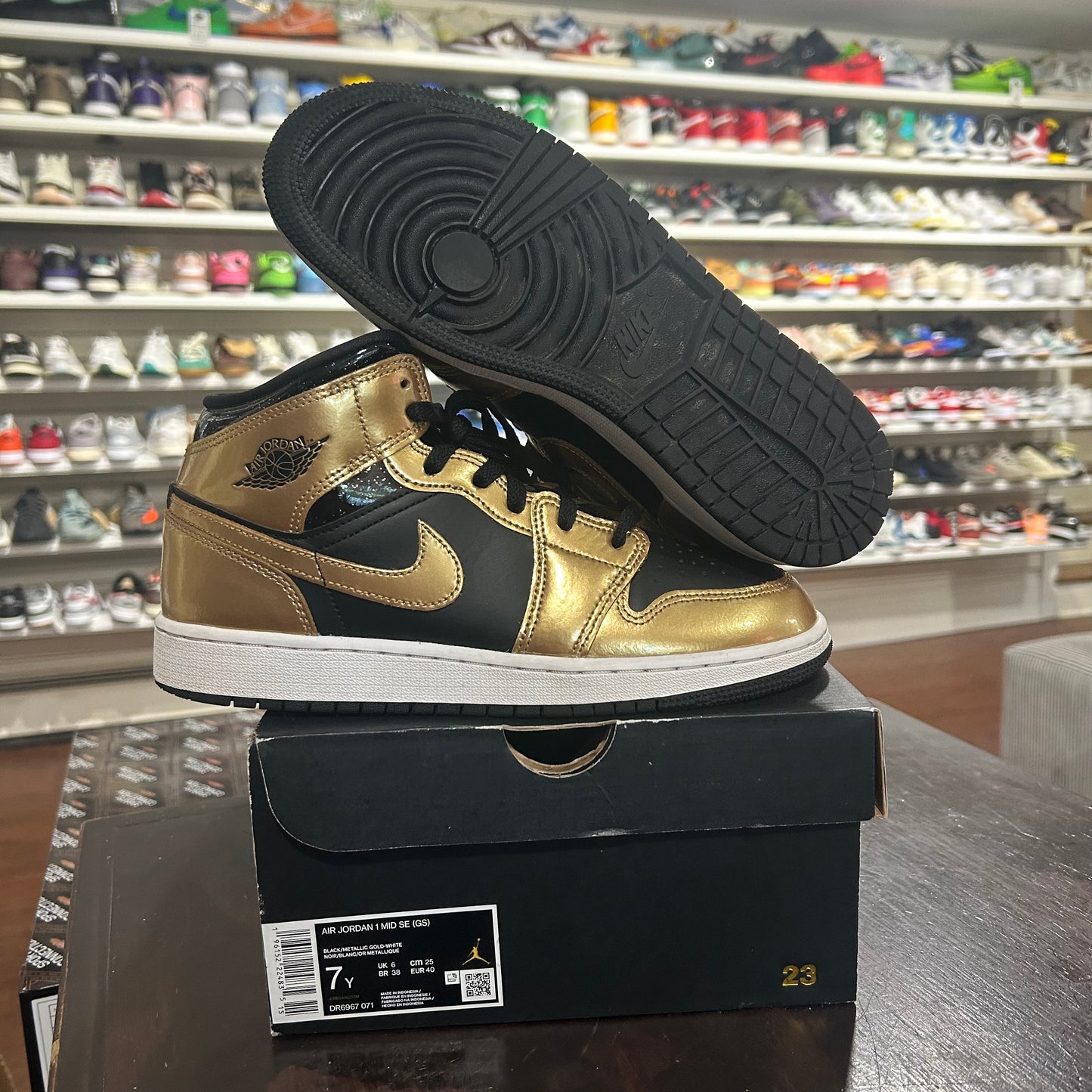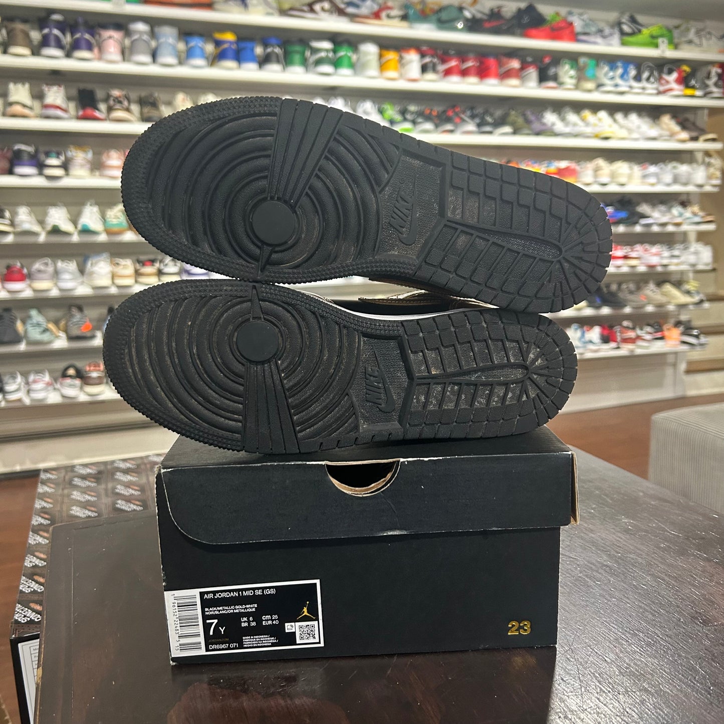 *USED* Jordan 1 Mid Metallic Gold Black (size 7Y)