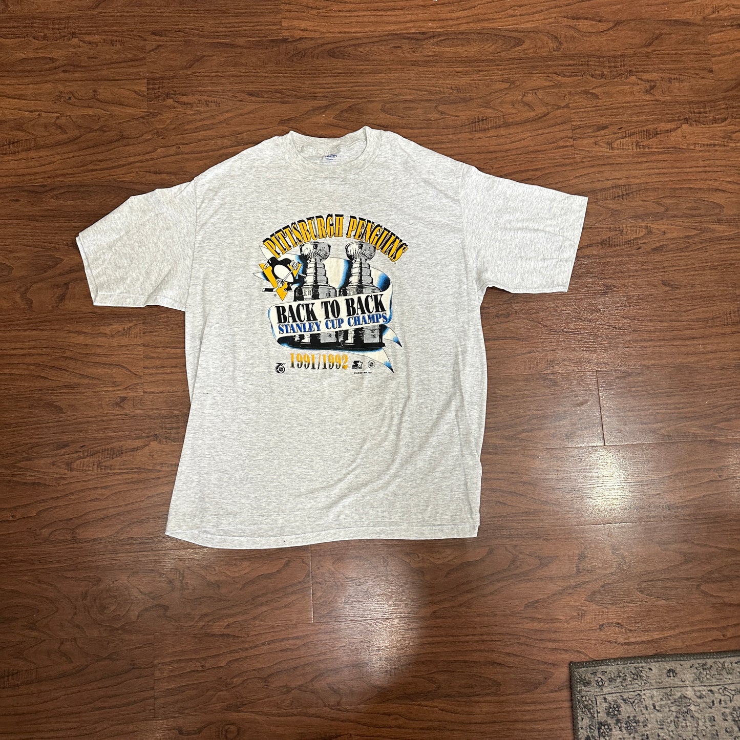 *VINTAGE* Pittsburgh Penguins back to back Stanley Cup champs Graphic Tee (FITS Large/X Large)